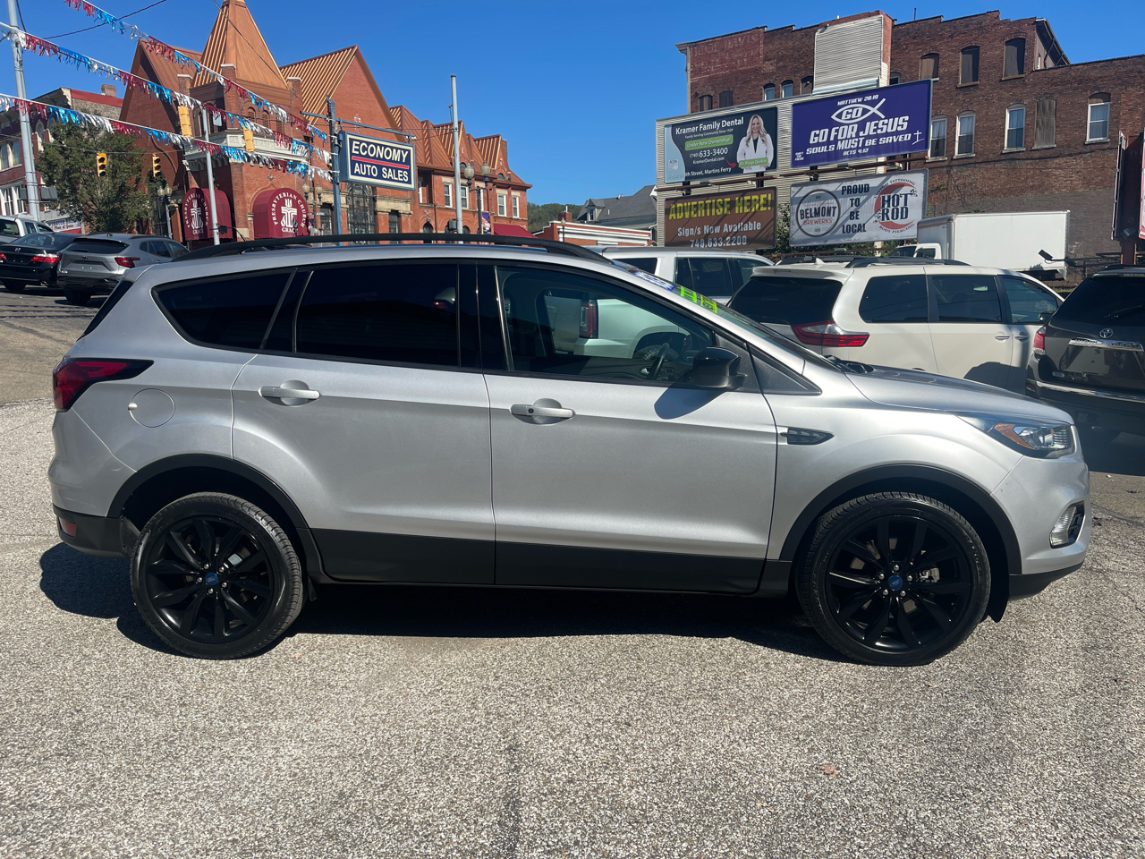 Odometer is 20146 miles below market average! 2019 Ford Escape SE 4WD 6-Speed Automatic 1.5L EcoBoost Locally Owned Vehicle, Free Carfax history report by clicking on the Carfax logo provided, 3 month or 3000 mile powertrain warranty included, Local trade-in, Brand new W.Va state inspection, Safety and service check with a fresh oil change, 4WD, 4-Wheel Disc Brakes, 6 Speakers, ABS brakes, Air Conditioning, AM/FM radio: SiriusXM, AppLink/Apple CarPlay and Android Auto, Automatic temperature control, Black Beltline Molding, Black Roof-Rack Side Rails, Brake assist, Bumpers: body-color, Compass, Delay-off headlights, Driver door bin, Driver vanity mirror, Dual front impact airbags, Dual front side impact airbags, Electronic Stability Control, Emergency communication system: SYNC 3 911 Assist, Equipment Group 200A, Exterior Parking Camera Rear, FordPass Connect, Four wheel independent suspension, Front & Rear Gloss Black-Painted Skid Plates, Front anti-roll bar, Front Bucket Seats, Front Center Armrest, Front dual zone A/C, Front fog lights, Front License Plate Bracket, Front reading lights, Fully automatic headlights, Gloss Black-Painted Sideview Mirror Caps, Gloss Black-Painted Upper Grille Bars & Plinth, Halogen Projector Headlamps w/Black Bezels, Heated front seats, Heated Partial Leather Front Sport Bucket Seats, Heated Unique Cloth Front Bucket Seats, Illuminated entry, Knee airbag, Leather-Wrapped Steering Wheel & Shift Knob, Low tire pressure warning, Occupant sensing airbag, Outside temperature display, Overhead airbag, Overhead console, Panic alarm, Passenger door bin, Passenger vanity mirror, Power door mirrors, Power driver seat, Power steering, Power windows, Radio data system, Radio: AM/FM Stereo w/MP3 Capable, Rear anti-roll bar, Rear seat center armrest, Rear window defroster, Rear window wiper, Remote keyless entry, SE Sport Appearance Package, Security system, Speed control, Speed-sensing steering, Split folding rear seat, Steering wheel mounted audio controls, SYNC 3 Communications & Entertainment System, Tachometer, Taillamps w/Black Bezel, Telescoping steering wheel, Tilt steering wheel, Traction control, Trip computer, Variably intermittent wipers, Wheels: 19" Premium Ebony Black-Painted Aluminum. **Celebrating over 30 years in business!**TRULY HASSLE FREE DETAILS IF YOU EMAIL OR CALL TOLL FREE!!! **** We take trades*****. We accept Visa, MasterCard and Discover.**** We offer financing through local banks and credit unions however, we do not offer any type of 'buy here pay here' financing****** **2 locations**Martins Ferry Ohio 740 -633-6500 and Bridgeport, Ohio 740-633-1300. 22/28 City/Highway MPG