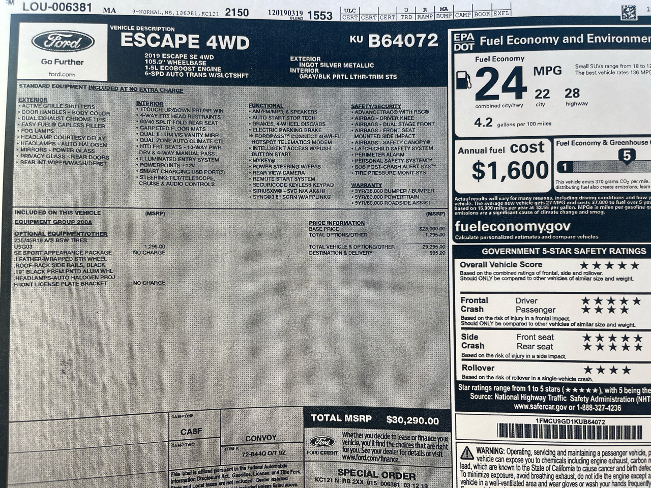 Vehicle Inquiry for 2019 Ford Escape SE 4WD