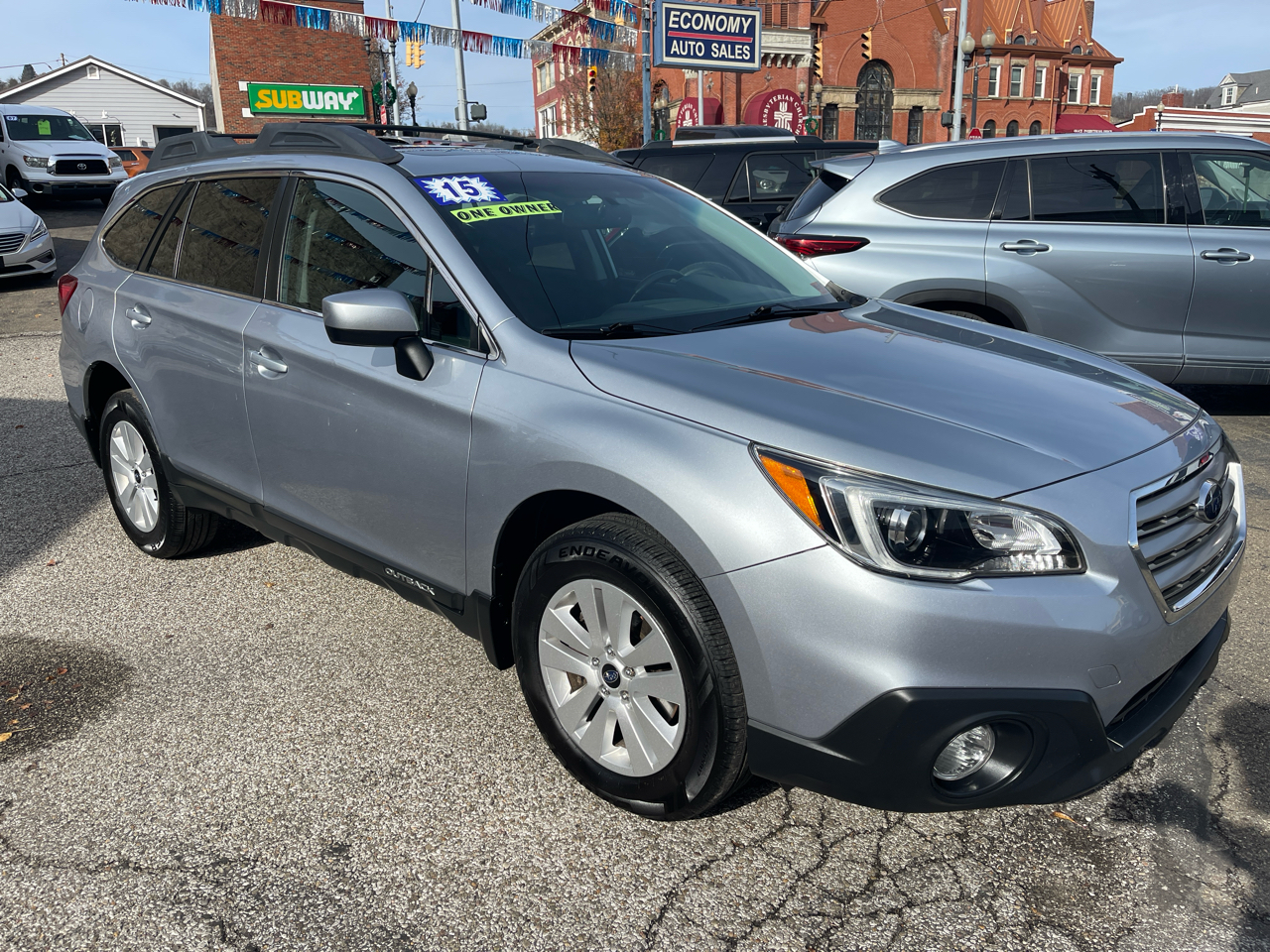Recent Arrival! Odometer is 51014 miles below market average! 2015 Subaru Outback 2.5i Premium AWD CVT Lineartronic 2.5L 4-Cylinder DOHC 16V Locally Owned Vehicle, Free Carfax history report by clicking on the Carfax logo provided, 3 month or 3000 mile powertrain warranty included, New Car Dealer Trade, Local trade-in, Brand new W.Va state inspection, 17" x 7.0" Aluminum Alloy w/Silver Finish Wheels, 4-Wheel Disc Brakes, 6 Speakers, ABS brakes, Air Conditioning, All Weather Floor Mats, AM/FM radio: SiriusXM, Anti-whiplash front head restraints, Auto-Dimming Rear View Compass Mirror w/Homelink, Automatic temperature control, Brake assist, Bumper Cover (Rear), Bumpers: body-color, Cargo Net (Rear Seat Back), Cargo Net (Rear), CD player, Cloth Upholstery, Driver door bin, Driver vanity mirror, Dual front impact airbags, Dual front side impact airbags, Electronic Stability Control, Exterior Auto Dimming Mirror w/Light, Exterior Parking Camera Rear, Four wheel independent suspension, Front anti-roll bar, Front Bucket Seats, Front Center Armrest w/Storage, Front dual zone A/C, Front fog lights, Front reading lights, Fully automatic headlights, Heated door mirrors, Heated front seats, Heated Reclining Front Bucket Seats, Illuminated entry, Leather Shift Knob, Low tire pressure warning, Moonroof Package & Power Rear Gate, Occupant sensing airbag, Outside temperature display, Overhead airbag, Overhead console, Panic alarm, Passenger door bin, Passenger vanity mirror, Popular Package #3, Power door mirrors, Power driver seat, Power Moonroof Package, Power Rr Gate w/ Automatic Close & Height Memory, Power steering, Power windows, Radio data system, Radio: AM/FM Stereo HD Radio w/Single Disc CD, Rear anti-roll bar, Rear Seat Back Protector, Rear seat center armrest, Rear window defroster, Rear window wiper, Rear-Vision Camera, Remote keyless entry, Roof rack, Security system, Speed control, Speed-sensing steering, Splash Guards, Split folding rear seat, Spoiler, Steering wheel mounted audio controls, Steering-Wheel Paddle-Shift Control Switches, Tachometer, Telescoping steering wheel, Tilt steering wheel, Traction control, Trip computer, Variably intermittent wipers, Vehicle Information Display. **Celebrating over 30 years in business!**TRULY HASSLE FREE DETAILS IF YOU EMAIL OR CALL TOLL FREE!!! **** We take trades*****. We accept Visa, MasterCard and Discover.**** We offer financing through local banks and credit unions however, we do not offer any type of 'buy here pay here' financing****** **2 locations**Martins Ferry Ohio 740 -633-6500 and Bridgeport, Ohio 740-633-1300. 25/33 City/Highway MPG Awards: * 2015 IIHS Top Safety Pick+, Top Safety Pick+ * ALG Residual Value Awards, Residual Value Awards * 2015 KBB.com 10 Best All-Wheel Drive Vehicles Under $25,000 * 2015 KBB.com 15 Best Family Cars * 2015 KBB.com 10 Most Comfortable Cars Under $30,000 * 2015 KBB.com 5-Year Cost to Own Awards * 2015 KBB.com Brand Image Awards * 2015 KBB.com Best Resale Value Awards Reviews: * If you like going off-road to hike, snowshoe, fish, kayak, ski, snowboard, bike, canoe, camp, spelunk, or rock climb, you might already have a Subaru Outback parked in your driveway. The good news is that the Outback SUV is just as good in town as it is on the trail. Source: KBB.com * Spacious and comfortable interior; efficient engines; excellent visibility; above-average off-road ability; top safety scores. Source: Edmunds